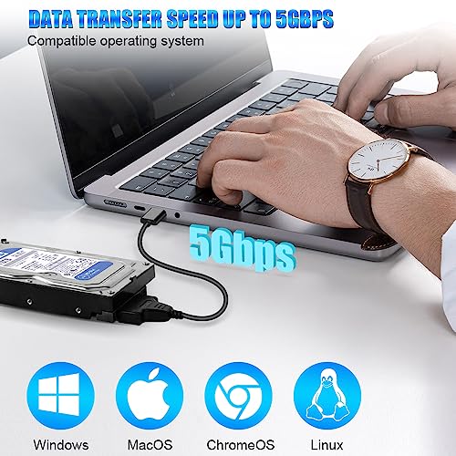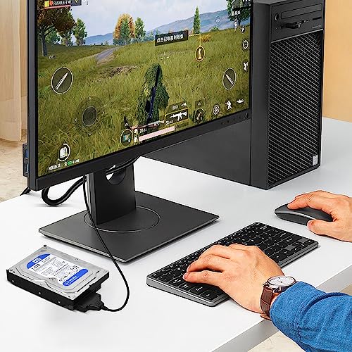 【KOMPATIBILITÄT】Kompatibel mit den meisten 2,5-Zoll-Festplatten und SSDs, Übertragungsrate bis zu 5 Gbit/s. Unterstützt Hot-Swap, SMART- und TRIM-Technologie, verbessert die SSD-Lese- und Schreibeffizienz und hilft Ihnen bei der Überwachung verschiedener Fehler, die auf der Festplatte auftreten können. Hinweis: Es können nur mechanische Festplatten und SSDs mit 2,5/1,8 Zoll verwendet werden. 3,5-Zoll-Desktop-Festplatten können dieses Kabel nicht verwenden., 【SCHNELLER ZUGRIFF AUF SSD/HDD】 Verwenden Sie diesen SATA-zu-USB-3.0-Adapter, um eine 2,5-Zoll-SATA-SSD/HDD einfach extern an ein USB-A-Gerät anzuschließen. Erweitern Sie den Speicher Ihres Laptops, aktualisieren Sie Ihr System, sichern Sie Dateien, erstellen Sie Disk-Images, stellen Sie Daten wieder her und übertragen Sie sie., 【HOCHGESCHWINDIGKEITSÜBERTRAGUNG】 Der USB 3.0-Adapter mit dem UASP-Übertragungsprotokoll unterstützt Datenübertragungsgeschwindigkeiten von bis zu 5 Gbit/s, was 70 % schneller als herkömmliches USB 3.0 ist und die Datenübertragung sowie die Lese- und Schreibgeschwindigkeit der SSD-Festplatte effektiv beschleunigt. Und dank der UASP-Funktion erhöht der Adapter die Geschwindigkeit und reduziert so die CPU-Last. Dadurch können HD-Filme, Musik und Daten in Sekundenschnelle übertragen werden., 【EINFACHE BEDIENUNG】 Plug-and-Play, Hot-Swap-Unterstützung, kein Treiber erforderlich, einfach zu bedienen. Mit Festplatten-Übertragungskabeln können Sie problemlos zwischen Laufwerken wechseln, ohne die Laufwerke in einem Rack unterzubringen. Ideal zum Arbeiten und Spielen., 【MINI-DESIGN】 Das exquisite und schlanke Design ermöglicht es Ihnen, den SATA-Konverter problemlos in Ihre Laptoptasche/Rucksack/Reisetasche zu stecken. Außerdem nimmt es nicht viel Platz auf Ihrem Schreibtisch ein, wenn Sie es im Büro oder zu Hause verwenden.