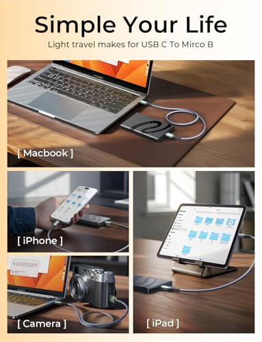 AINOPE 10 Gbit/s Micro B auf USB C Festplattenkabel, 0,5 m, [Nylon geflochten] USB C auf Micro B Kabel, USB C auf externes Festplattenkabel für Seagate WD Westgate, MacBook Air M2 Pro