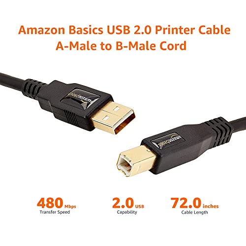 Amazon Basics USB-Kabel, USB-A auf USB-B-Stecker, USB 2.0, Anschlüsse vergoldet, 1.8 m, für Drucker