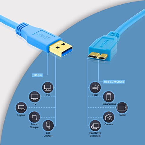 BIGtec 5m USB 3.0 micro USB Kabel Datenkabel Festplattenkabel USB micro B Stecker zu USB 3.0 Stecker blau 5Gbit/s Ladekabel für Handy Smartphone externe Festplatte