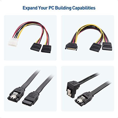 Cable Matters SATA Kabel SET SATA III Datenkabel und SATA Stromkabel Kit mit geraden und 90 Grad SATA 3 Kabel set, Power Splitter Adapter und Molex-Adapter in Schwarz
