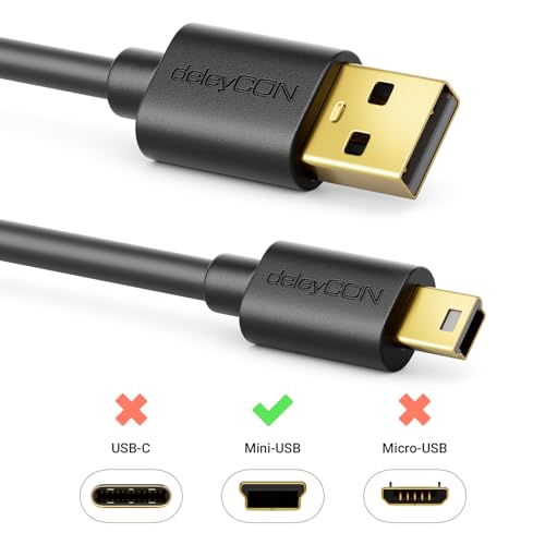 deleyCON Mini USB 2.0 High-Speed Kabel // Mit USB 2.0 High-Speed-Technologie // Hochwertige, mehrfache Schirmung für schnelle, störungsfreie Datenübertragung, Anschluss: 1x USB-A-Stecker zu 1x Mini-B-Stecker // Kompatibel mit allen USB-Geräten, sofern eine USB-A-Buchse oder Mini-B-Buchse vorhanden ist, Übertragungsgeschwindigkeiten von bis zu 480 Mbps // Abwärtskompatibel zu USB 1.0/1.1, Hervorragend geeignet zum Verbinden von z. B.: Mikrofone, Festplattengehäusen, USB-Hubs, Digitalkameras, Navis, MP3-Playern, Webcams und zahlreichem weiterem USB-Computerzubehör, Auch als Daten- und Ladekabel für z. B. Digitalkameras, Mobiltelefone, MP3-Player, externe Festplatten, Handheld-Spielekonsolen, Tablets, GPS-Geräte, Bluetooth-Headsets, digitale Diktiergeräte, Drucker uvm. verwendbar, Farbe: Schwarz // Länge: 0,5 Meter // Anzahl: 1 Stück, Modellnummer: MK723 // Marke: deleyCON