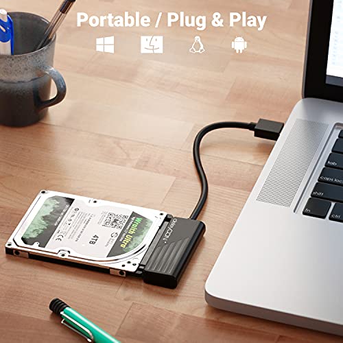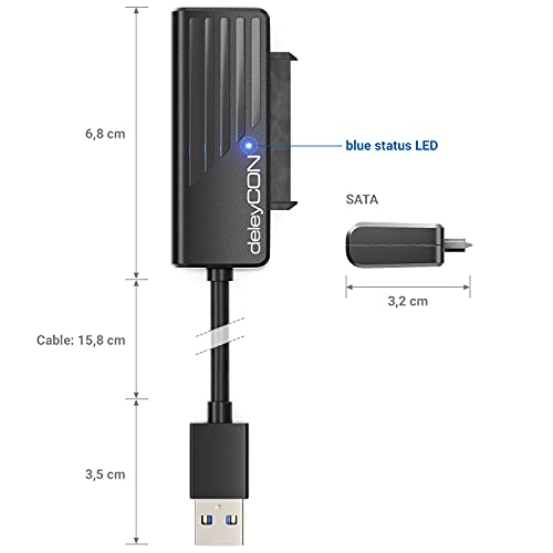 deleyCON USB 3.0 Adapterkabel für 6,35 cm (2,5") SATA HDD/SSD // Übertragungsgeschwindigkeit von bis zu 5 GBit/s, Plug&Play = Keine Treiberinstallation unter Win Vista, Win7, Win8, Win10, Mac OS8,4 Betriebssystemen, Anschlüsse: 1x USB 3.0 mit A Stecker zu SATA 2,5" Zoll, Für 3,5-Zoll-Festplatten nicht kompatibel = ATA (IDE) -, MSATA- und M.2-Schnittstellen, Die OTG-Funktion muss beim Anschließen des Telefons aktiviert sein, Farbe: Schwarz // Anzahl: 1 Stück, Modellnummer: MK4738 // Marke: deleyCON