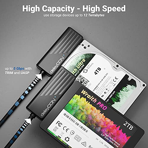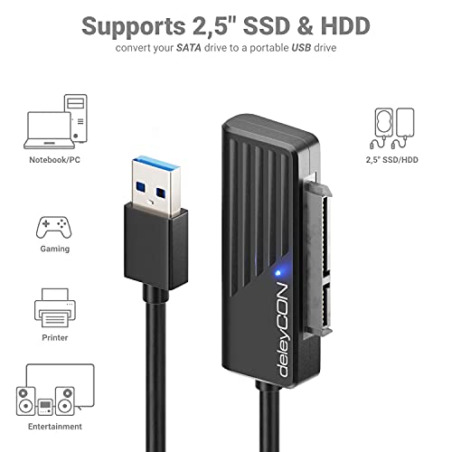 deleyCON USB 3.0 SATA Adapter Kabel USB A zu 2,5″ Zoll Festplatten Laufwerke HDDs SSDs 5 GBit/s UASP SATA I II III Plug&Play