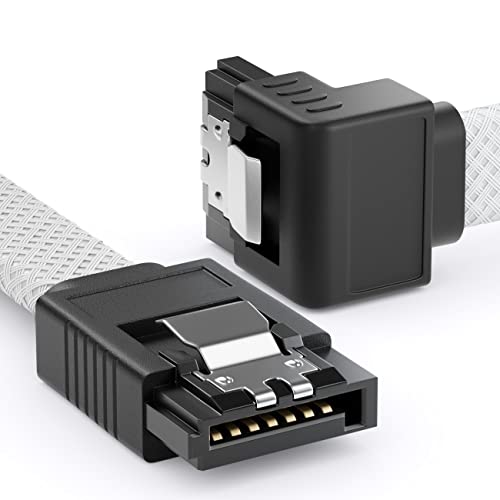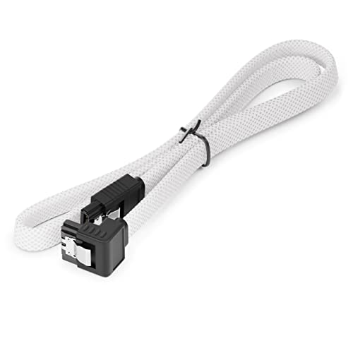 deleyCON Nylon SATA 3 (SATA III) Kabel (Serial AT Attachment) // Bis zu 6 Gbit/s Übertragungsgeschwindigkeit, Anschluss: 7-Pin SATA L-Stecker gerade zu 7-Pin SATA L-Stecker 90° gewinkelt // Genormte, passgenaue S-ATA Stecker, Kompatibel mit allen Geräten die über einen S-ATA Anschluss verfügen (2,5" & 3,5" -Festplatten, -HDD, -SSD, CD-, DVD-, BluRay- Laufwerke & Brenner, SATA-Bandlaufwerke, Speicherkartenlesegeräte etc.), Abwärtskompatibel zu SATA I (S-ATA I), SATA II (S-ATA II) // Bitte beachten Sie, dass dieses Kabel keine Stromversorgung für Ihre Festplatte bietet, SATA Stecker mit Verriegelung // Einfaches Verlegen im PC- Computer- Gehäuse, Farbe: Weiß // Länge: 30 Zentimeter // Anzahl: 1 Stück, Modellnummer: MK5587 // Marke: deleyCON