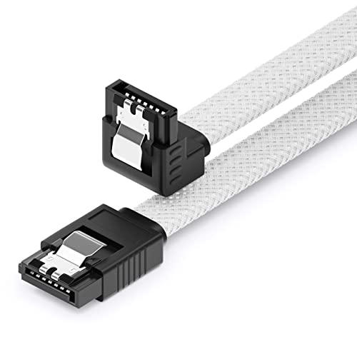 deleyCON 30cm SATA 3 Kabel Nylon 6 Gbit/s Datenkabel SATA III Anschlusskabel Serial ATA Verbindungskabel für Mainboard & Festplatte HDD SSD 1 S-ATA L-Stecker 90° Gewinkelt Weiß
