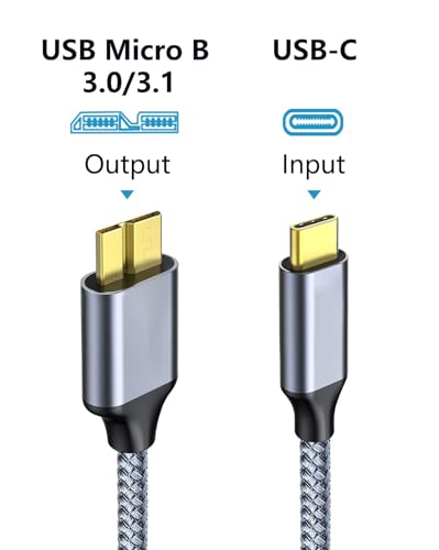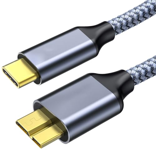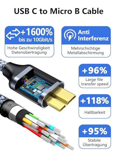 Fannoday USB C auf Micro B Kabel USB 3.0, Festplattenkabel 10Gbps Schnelle Datenübertragung, Robust Nylon Datenkabel, Kompatibel mit Externer Festplatte, Kamera, HDD, Tablette und Laptop, 0,5m