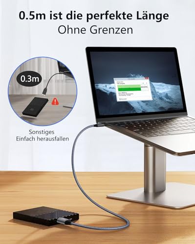 Mit einer Länge von 0,5m ist das Kabel ideal für den Einsatz auf dem Schreibtisch. Es bietet genügend Spielraum für den normalen Gebrauch, ohne übermäßig viel Platz einzunehmen.