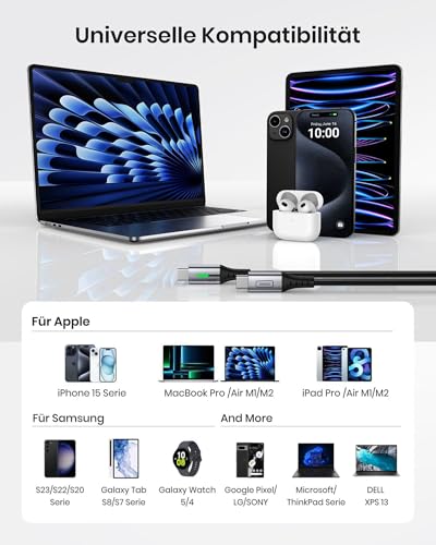 - Kompatibel mit einer Vielzahl von Geräten wie iPhones, Samsung Galaxy, iPad Pro, MacBook Air, Tablets und mehr