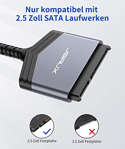 JSAUX USB 3.0 auf SATA Adapter, USB 3.0 zu 2,5 Zoll Festplatten/SSD Nylon SATA Kabel Adapter [Unterstützt UASP SATA III] Kompatibel mit Windows, MacOS, ChromeOS, Linux-(Grau)