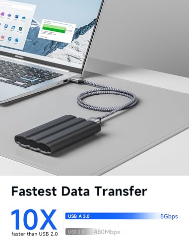 Das JSAUX USB 3.0 Micro B Kabel überzeugt durch seine beeindruckende Datenübertragungsgeschwindigkeit von bis zu 5 Gbps. Dies ist eine erhebliche Verbesserung gegenüber dem älteren USB 2.0 Standard. Filme und große Dateien werden in Sekundenschnelle übertragen, was den Gebrauch besonders effizient macht.