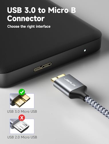 JSAUX USB 3.0 Micro B Kabel [1M+2M], USB 3.0 Stecker auf Micro B Datenkabel Externes Festplattenkabel Kompatibel mit Toshiba, WD, Seagate Festplatte, Samsung Galaxy S5/Note 3/Note Pro 12,2 ect