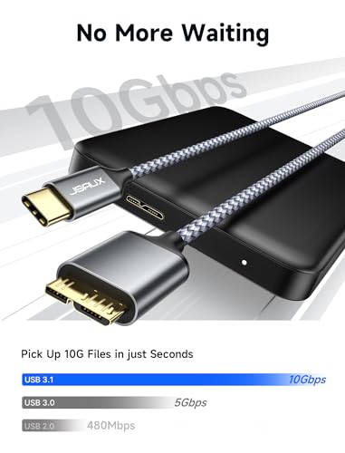 Verbinde deine USB-C-Geräte mit externen Festplatten schnell und zuverlässig: Das JSAUX 10Gbps Kabel bietet schnelle Datenübertragung, verwicklungsfreies Design und universelle Kompatibilität. Perfekt für Toshiba, Seagate, WD und mehr. Zweierpack für vielseitigen Einsatz.