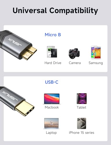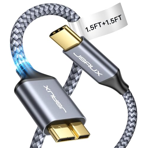 JSAUX 10Gbps USB C auf Micro B Kabel (0.5m+0.5m), Typ C 3.1 zu Micro B Festplattenkabel USB C Stecker auf Micro-B Kompatibel mit der Externen Festplatte Toshiba/Seagate/WD, MacBook, Galaxy S5-Grau