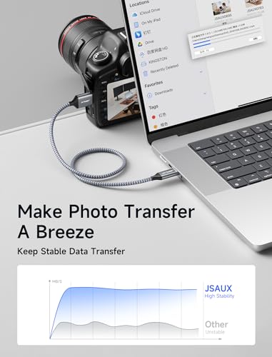 Das JSAUX Kabel bietet beeindruckende Datenübertragungsgeschwindigkeiten von bis zu 5 Gbps, was es zehnmal schneller macht als Standard-USB 2.0. Diese Geschwindigkeit ist besonders praktisch, wenn du große Dateien wie Videos oder Backups übertragen musst.