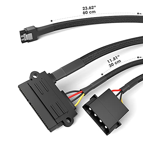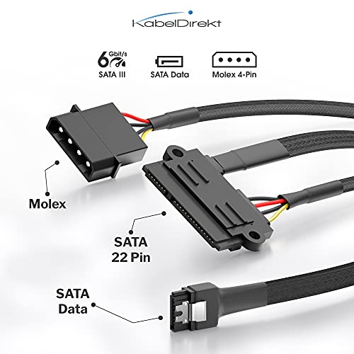 KabelDirekt – hochflexibles SATA Kabel, Adapterkabel 15-Pin SATA 6 Gbit/s (Daten) und 4-Pin Molex (Strom) auf 22-Pin SATA (Daten & Strom), 60 cm – für Festplatte/HDD und SSD
