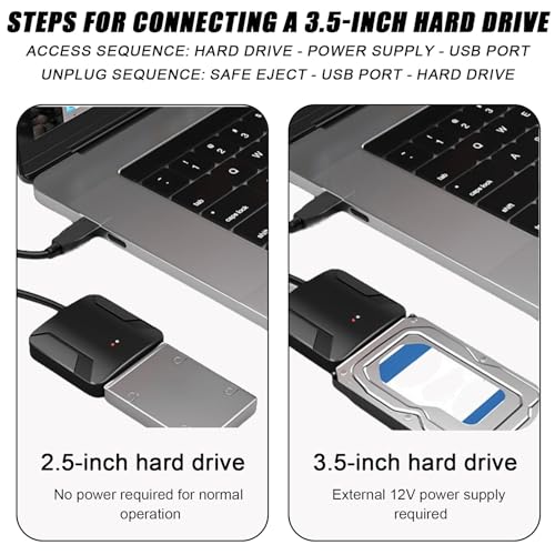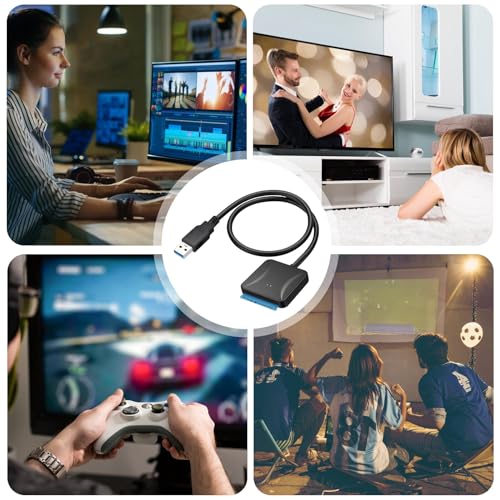 | Features | 【Schneller Zugriff auf SATA SSD oder HDD】Fügen Sie Speicherplatz zu Ihrem Laptop hinzu, indem Sie diesen USB 3.0 auf SATA Adapter verwenden, um eine 2,5-Zoll-/3,5-Zoll-HDD/SSD-Festplatte und ein optisches SATA-Laufwerk anzuschließen., 【Plug and Play】 Mit dem Festplatten-Übertragungskabel können Sie problemlos zwischen Laufwerken wechseln, ohne das Laufwerk im Gehäuse installieren zu müssen. Es ist Plug-and-Play und erfordert keine Treiber., 【UASP-Funktion】 Bietet schnellere Übertragungsgeschwindigkeiten bei Anschluss an einen Computer, der auch UASP unterstützt, mit 70 % schnelleren Lesegeschwindigkeiten und 40 % schnelleren Schreibgeschwindigkeiten als herkömmliches USB 3.0. Der USB 3.0 auf SATA Adapter unterstützt USB 3.0-Datenübertragungsgeschwindigkeiten von 5 Gbit/s. Hinweis: Die tatsächliche Rate hängt von der Leistungsfähigkeit Ihres Geräts ab., 【12V 2A Netzteil im Lieferumfang enthalten】Dieser USB 3.0-zu-SATA-Adapter wird mit einem DC-Klinkenanschluss geliefert. Mit dem Netzteil können sowohl 2,5" als auch 3,5" SATA HDDs angeschlossen werden. Bitte beachten Sie, dass eine Stromversorgung unbedingt erforderlich ist, wenn eine 3,5-Zoll-SATA-Festplatte angeschlossen ist., 【Verschiedene Anwendungen】Schließen Sie 2,5-Zoll-SSD/HDD und 3,5-Zoll-Festplatte einfach an PC, Laptop, PS4, Fernseher, Router für Datenübertragung oder Speichererweiterung an. Es eignet sich perfekt zum Hochfahren alter Festplatten/SSDs und zum Wiederherstellen wichtiger Dateien von einem beschädigten PC. |