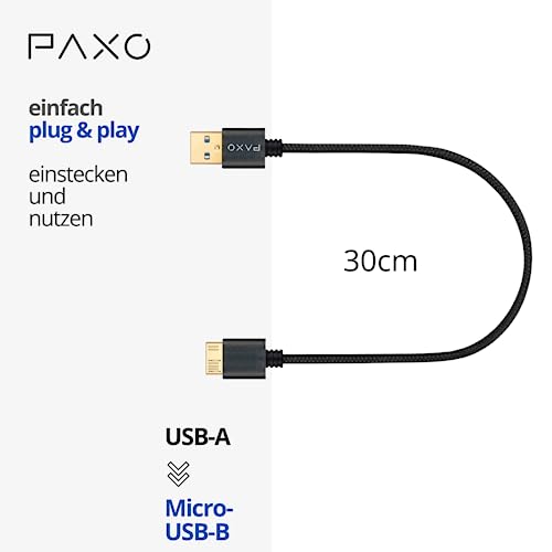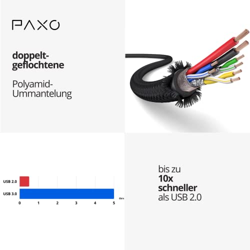 Erlebe ultraschnelle Datenübertragung mit dem 0,3 m Nylon USB 3.2 Gen2 Micro-USB-Kabel von PAXO. Robuster Stoffmantel sorgt für Langlebigkeit. Perfekt zum Laden und Datenaustausch bei Abwärtskompatibilität und zufriedenstellender Garantie.