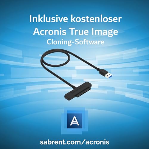 Nutze den Sabrent SATA-USB-Adapter, um deine 2,5-Zoll-SSD oder HDD schnell und einfach anzuschließen. Genieße 5Gbps Datenübertragung, Plug-and-Play-Komfort und breite Kompatibilität, während die mitgelieferte Software Acronis True Image müheloses Klonen ermöglicht.