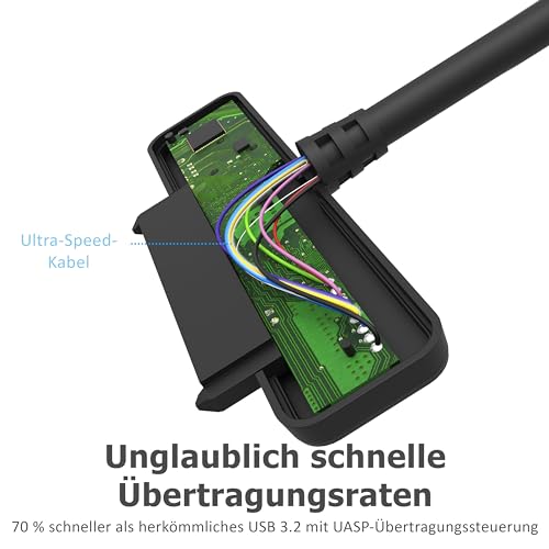 Der Adapter nutzt die USB 3.2-Technologie, um Daten mit einer sehr hohen Geschwindigkeit von bis zu 5 Gbit/s zu übertragen. Dies ist insbesondere für große Dateien oder Backups nützlich, da es den Transferprozess erheblich verkürzt.