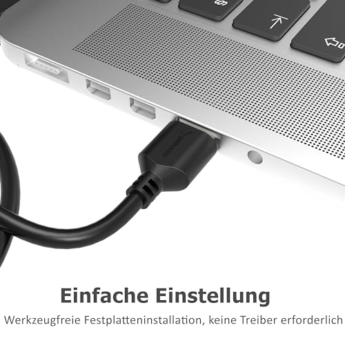SATA auf USB 3.2 Adapter: können Sie eine 2,5 Zoll-SATA I/II/III-Festplatte oder SSD mit UASP-Unterstützung an Ihren Computer anschließen, eine LED-Leuchte zeigt den Betriebs- und Aktivitätsstatus an, Keine Treiber erforderlich – einfach Plug-and-Play;, Hohe Geschwindigkeit: Der SABRENT SATA zu USB Adapter für 2,5 Zoll SSD und HDD kann eine Übertragungsrate von bis zu 5Gbps erreichen, und dank der UASP Funktion erhöht der Adapter die Geschwindigkeit, wodurch die CPU-Last reduziert wird;, Breite Kompatibilität: Der SABRENT SATA auf USB 3.0 Adapter kompatibel mit allen SATA 2,5 SSD und HDD, Unterstützt Windows XP/Vista/7/8/8.1/10.11. Mac OS 9/10/11 oder höher, Linux und Chrome OS, (Abwärtskompatibel mit USB 2.0);, Komfort: Dieser Adapter wird mit einem kostenlosen Download der Software Acronis True Image für Sabrent zum einfachen Klonen geliefert;, Kaufen Sie mit Vertrauen: Wenn Sie während des Gebrauchs auf Probleme stoßen, setzen Sie sich bitte vorher mit uns in Verbindung.