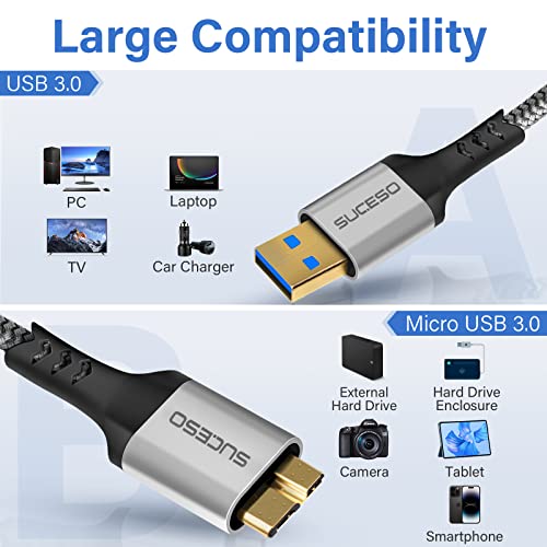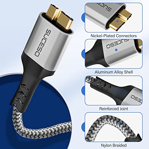 SUCESO USB 3.0 Micro B Kabel Externes Festplattenkabel USB 3.0 Stecker auf Micro B Stecker Datenkabel Kompatibel mit Toshiba, WD, Seagate, My Passport, Samsung Galaxy S5/Note 3/Note Pro 12,2 usw – 1M