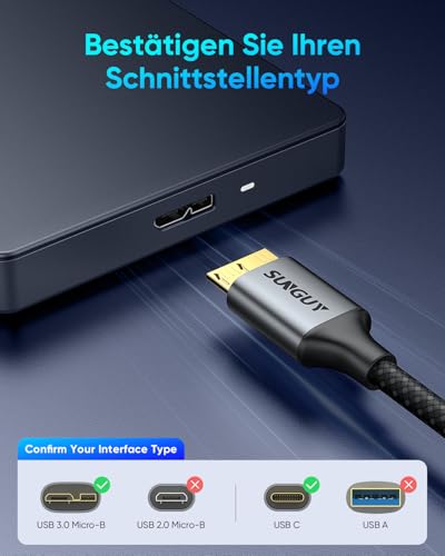 SUNGUY USB C auf Micro B Kabel 0.5m, Typ C 3.0 zu Micro USB Festplattenkabel USB C Stecker auf Micro B Stecker Kompatibel mit der externen Festplatte Toshiba/Seagate/WD, MacBook, Galaxy S5 Note 3