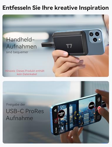 | Features | ⚠️Hinweis: Dieses Produkt enthält keine Festplatte und kein Datenkabel, sondern nur eine Festplattenabdeckung. Bitte fügen Sie keine nicht-magnetischen Hüllen zwischen dem iPhone und dem Produkt hinzu, da sonst der Magnetismus geschwächt wird (es gelten magsafe Fälle)., Das iPhone 15 Pro & Pro Max hat eine neue Welt für Content-Ersteller auf jeder Ebene eröffnet, mit der Entfesselung der USB-C ProRes-Aufnahme. Sie können hochauflösendes ProRes-Video aufnehmen, aber nur, wenn die Daten direkt auf eine externe SSD gehen. Sie wollen nicht, dass das Laufwerk vom Telefon baumelt, deshalb haben wir eine Magsafe SSD-Hülle für Samsung T7 entwickelt, die magnetisch am Mobilteil haftet. Verbinden Sie die beiden über ein USB-C-Kabel und schon können Sie mit der Aufnahme beginnen., Diese magnetische Festplattenhülle besteht aus Silikon, das sich angenehm anfühlt und gleichzeitig Schutz vor Schäden beim Herunterfallen oder Stößen bietet. Es ragt 0,2 mm von der Oberfläche der Festplatte ab, um Kratzer zu verhindern. Dies wäre ein tolles Neujahrsgeschenk, Diese magnetische SSD-Hülle ist kompatibel mit MagSafe und kann direkt mit dem iPhone 15 Pro & Pro Max oder mit einer MagSafe-kompatiblen Hülle verbunden werden. Die Magnetverbindung ist stark und das Silikon sorgt für zusätzliche Reibung, um das Modul an Ort und Stelle zu halten und gleichzeitig Schäden an der Glasrückseite des iPhones zu vermeiden., Das Beste daran ist, dass diese unglaubliche SSD-Hülle nicht nur auf die Verwendung des iPhones beschränkt ist. Für die Takelage verwenden Sie den klebrigen Eisenring für eine solide und einfache Möglichkeit, das magnetische SSD-Gehäuse an jeder flachen Oberfläche zu befestigen. Es kann auf der Rückseite von Laptops und Monitoren, auf dem PC-Gehäuse oder einer Metall-Stecktafel verwendet werden, egal ob zu Hause, im Büro oder im Freien., Spezielles Zubehör für Samsung SSD T7/T7 Touch, nicht für T7 Shield, dieses Produkt ist nur eine Festplattenabdeckung, so dass Sie nur diese kostengünstige Festplatte kaufen müssen, um sie zu verwenden. Die Größe passt perfekt zu Ihrem iPhone, ist ergonomisch und hat ein einteiliges Gefühl, wenn der Snap-on Magnet befestigt wird., Verwenden Sie diese magnetische Snap-on SSD Hülle mit der Samsung T7 SSD lässt iPhone 15 Pro und Pro Max Benutzer problemlos Terabyte von hochauflösenden Videos aufnehmen. Mit diesem Zubehör können Sie Ihrem Telefon im Handumdrehen zusätzlichen Speicherplatz hinzufügen, während Sie bereit sind, eine Videokamera zu sein und Selfies zu klicken und Videos auf meinem iPhone aufzunehmen. |