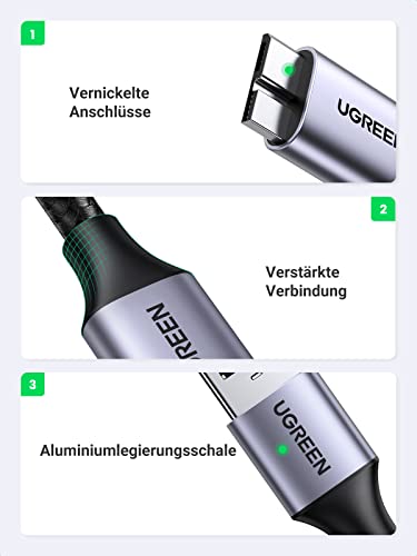 UGREEN USB 3.0 Micro B Kabel USB 3.0 Stecker auf Micro B Stecker Datenkabel für externe Festplatten Seagate, Toshiba Canvio, Western Digital (WD), My Passport, Galaxy S5, Note 3/ Pro 12.2 usw. (0.5m)