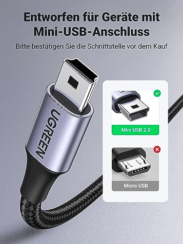 UGREEN USB Mini-B Kabel Ladekabel USB A Stecker auf Mini USB Stecker Nylon kompatibel mit PS3 Game Controller, Externe Festplatte, Dashcam, Mikrofon, usw. (3m)