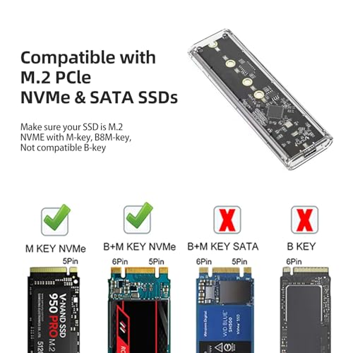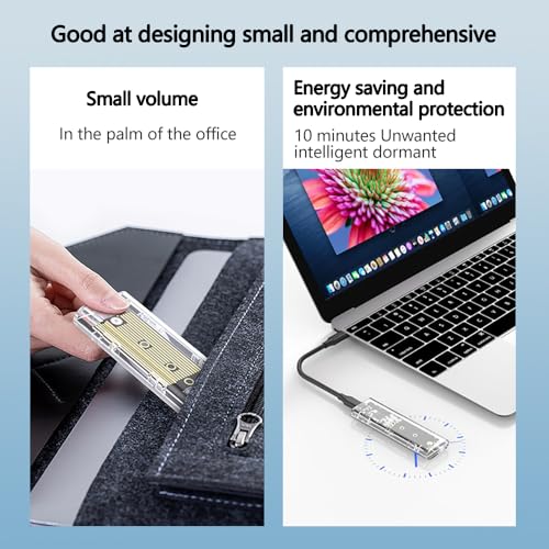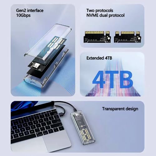 | Features | ✅【10 Gbit/s Hochgeschwindigkeitsübertragung】M.2 NVMe verwendet die neueste USB 3.1 Gen 2-Schnittstelle und unterstützt eine theoretische Datenübertragungsgeschwindigkeit von bis zu 10 Gbit/s, ohne langsame und unregelmäßige Übertragungen ertragen zu müssen. Die Übertragung eines HD-Films dauert nur 2 Sekunden. Es unterstützt UASP-, TRIM- und S.M.A.R.T.-Funktionen. Die tatsächliche Übertragungsgeschwindigkeit hängt von der SSD-Geschwindigkeit und dem USB-Anschlusstyp ab., ✅【Benutzerfreundliches Design und Plug-and-Play-Installation】Für dieses M.2-SSD-Gehäuse ist kein Treiber erforderlich. Öffnen Sie einfach die Abdeckung, stecken Sie den Treiber ein, schließen Sie die Abdeckung und starten Sie das Plug-and-Play. Der Innenraum ist kompakt und stabil und wackelt nicht., ✅ 【Transparentes Design mit guter Wärmeableitung】 Transparentes Design, das nicht nur robust und langlebig ist und Sie in Echtzeit über den Betriebsstatus des Geräts informiert, sondern auch eine hervorragende Wärmeableitung bietet und Ihrer SSD die beste Leistung und längere Lebensdauer verleiht., ✅ 【Starke Kompatibilität】 Dieses NVME-Gehäuse ist kompatibel mit NVMe in der Größe 2242/2260/2280, wie z. B. M.2 NVMe PCIe M-Key-SSD. NVME-Gehäuse kompatibel mit mehreren Betriebssystemen, Windows, Mac OS, Linux, Android. Kompatibel mit Thunderbolt 3, unterstützt UASP/Trim mit ultraschneller Übertragungsgeschwindigkeit. Unterstützt Plug & Play und Hot Swap. Keine SATA-Unterstützung, ✅ 【Super Garantie】: 2 Jahre bedingungslose Garantie, freundlicher Garantie-Support. Wenn es Probleme mit dem Produkt in der Verpackung gibt, hoffe ich, dass Sie uns umgehend per E-Mail kontaktieren. Wir bieten eine 100-prozentige Rückgabegarantie und bieten Ihnen einen zufriedenstellenden Service. Ich habe meines einem Freund gegeben und er liebt es. Das ist das Beste, was sie je hatten |