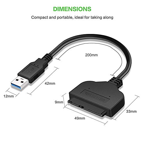 Yizhet USB 3.0 zu SATA Adapter USB 3.0 Kabel auf SATA, Festplattenadapter USB für 2.5 Zoll HDD SSD Festplatte Laufwerke Hard Disk, Kompatibel mit Windows, ChromeOS, Linux, Hot Swap Plug & Play
