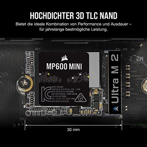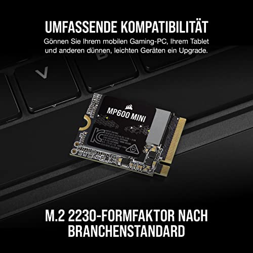 Corsair MP600 Mini 1TB M.2 NVMe PCIe x4 Gen4 2 SSD – M.2 2230 – Bis zu 4.800MB/Sek. Sequentielles Lesen – Hohe Dichte 3D TLC NAND – Ideal Für Steam Deck und Microsoft Surface – Schwar