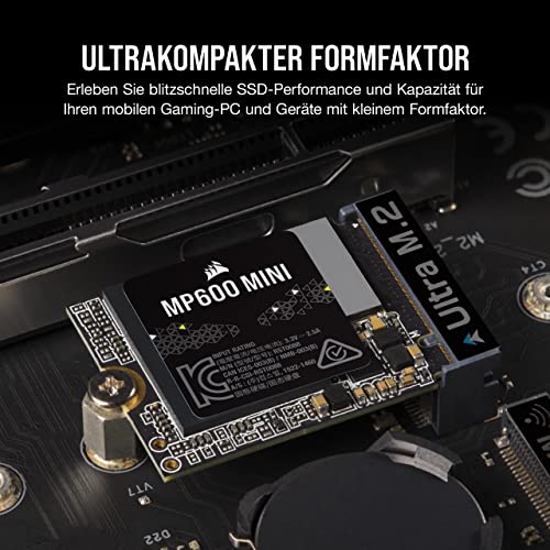 Die Corsair MP600 Mini 1TB M.2 NVMe SSD überzeugt auf ganzer Linie mit ihrer beeindruckenden Geschwindigkeit, der Vielseitigkeit und der Zuverlässigkeit, die von Corsair bekannt sind. Sie ist das ideale Upgrade für moderne Geräte wie das Steam Deck und das Microsoft Surface, aber auch für ältere Geräte, die von der Rückwärtskompatibilität profitieren können.