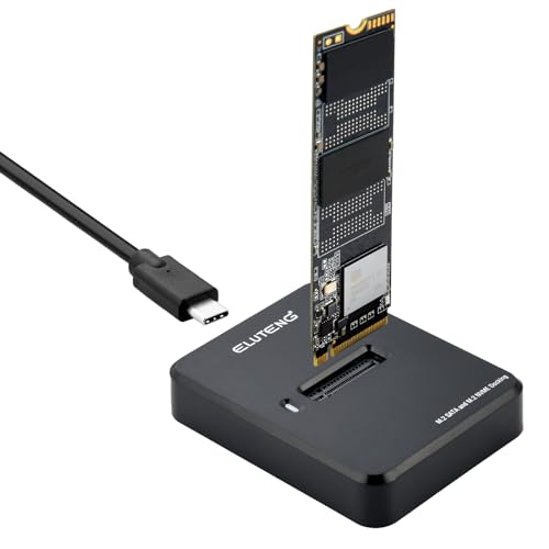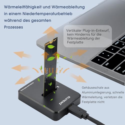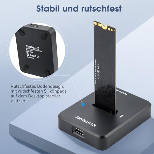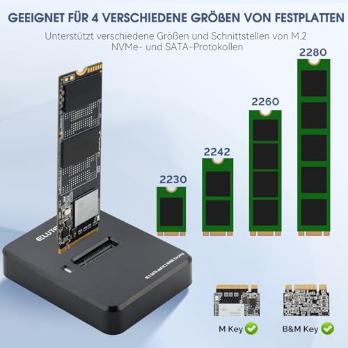 Profitiere von der ELUTENG Dockingstation: Unterstützung für M.2 NVME & SATA SSDs, schnelle Übertragung mit USB3.1, werkzeuglose Installation und ausgezeichnete Wärmeableitung. Kompatibel mit mehreren Systemen für nahtlose Integration. Ideal für effizientes Arbeiten!