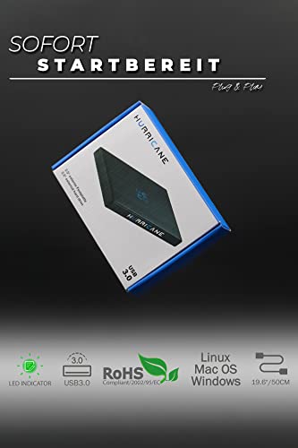 Mit der HURRICANE 500GB externen Festplatte erlebst du schnelle USB 3.0-Datenübertragung. Robust und kompatibel mit Windows, Mac, Linux, sowie Konsolen. Ideal für Backups und große Dateien. Kinderleicht Plug-and-Play ohne Installation.