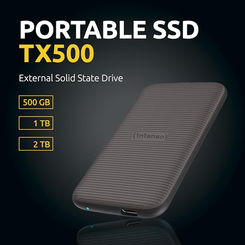 Intenso Externe SSD TX500, 1 TB Portable Solid State Drive, Super Speed USB 3.2 Gen 2×1 (10 Gbit/s), bis zu 1000 MB/s