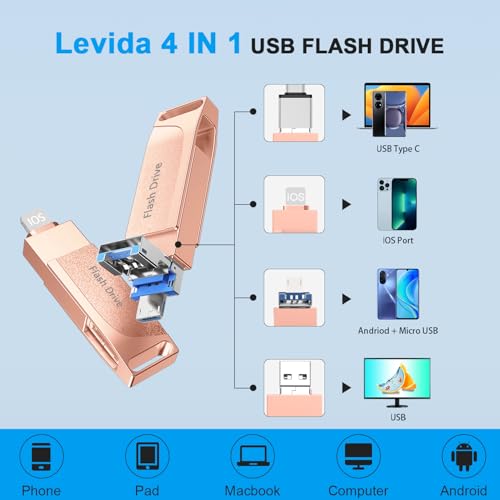 USB Stick 512GB für Phone,Levida Speicherstick,Photostick,Externer Speicher 4 in 1,Fotostick 3.0,Flash Drive für Handy,iOS,Android,Pad,Laptop,Pc(Mobile Memory,Automatic Photo Backup),Hellrosa