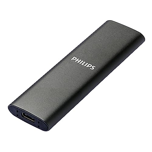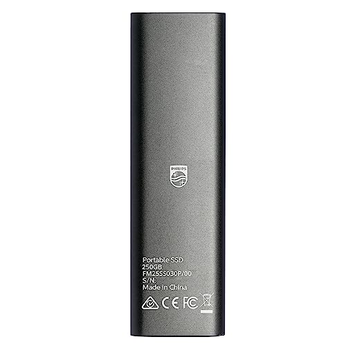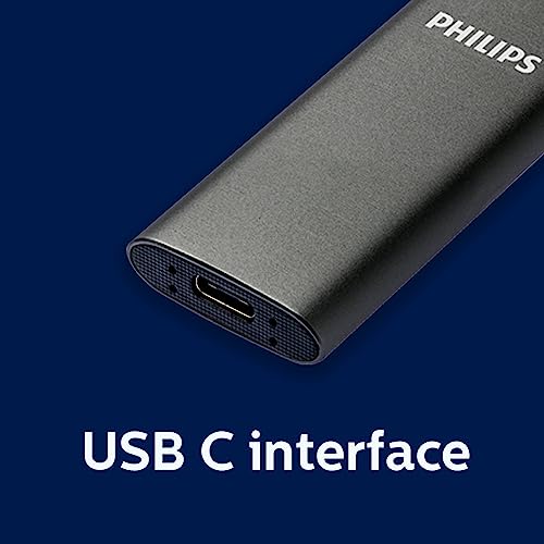 PHILIPS Externe Portable SSD 250 GB – Ultra Slim SATA Ultra Speed USB-C, Lesegeschwindigkeit bis zu 540 MB/s, Aluminium