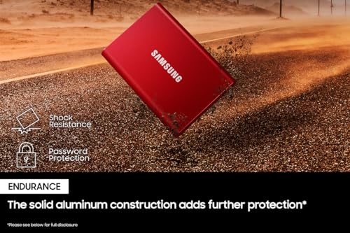 Das Design der T7 ist nicht nur ästhetisch ansprechend, sondern auch funktional. Die Alu-Hülle sorgt für eine exzellente Wärmeableitung und gibt der SSD ein robustes Aussehen, das Erschütterungen und Stürzen trotzt. Die rote Farbvariante verleiht ihr außerdem einen individuellen Look.