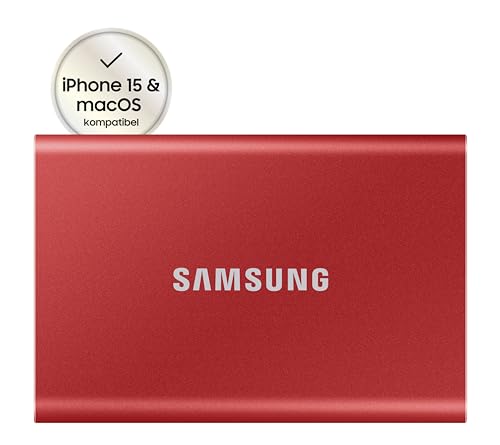 Samsung Portable SSD T7, 2 TB, USB 3.2 Gen.2, 1.050 MB/s Lesen, 1.000 MB/s Schreiben, Externe SSD Festplatte für Mac, PC, Smartphone und Spielkonsole, Rot, MU-PC2T0R/WW