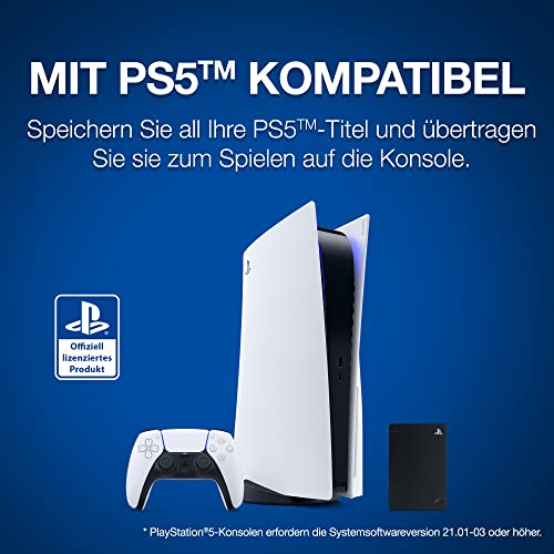 | Features | OFFIZIELL LIZENZIERT Angepasste Firmware zur nahtlosen Verwendung mit allen PS5- und PS4-Modellen, MIT PS5 KOMPATIBEL Speichern Sie all Ihre PS5-Titel und übertragen Sie sie zum Spielen auf die Konsole, FÜR PS4 Starten Sie PS4-Spiele direkt von der externen Festplatte, FÜR IHRE SPIELESAMMLUNG Dank 4 TB Speicher müssen Sie keine Spiele mehr löschen und mühsam erneut herunterladen, KEIN WERKZEUG ERFORDERLICH Dank einfacher Plug-and-Play-Einrichtung sind Sie in weniger als zwei Minuten bereit für Action |