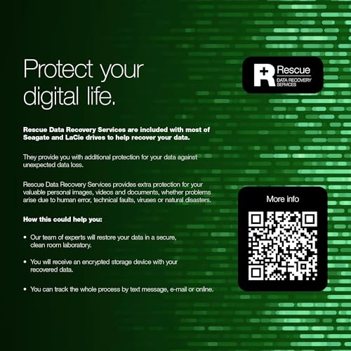 Ein bemerkenswerter Vorteil der Seagate Portable Drive ist der mitgelieferte 2-Jahres-Datenrettungsservice. Dies sorgt für ein beruhigendes Gefühl der Sicherheit, dass deine Daten auch im Notfall wiederhergestellt werden können.