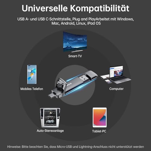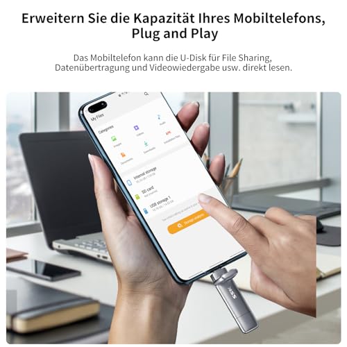 | Features | Duales OTG USB C + USB A Externe SSD: Das Dual USB ssd festplatte extern ist perfekt mit einem USB-C Anschluss und einem USB-A 3.2 Anschluss ausgestattet und ermöglicht Ihnen eine bequemere Datenübertragung zwischen Smartphone/Tablet und Computer. Geben Sie sofort Speicherplatz frei oder verschieben Sie schnell Bilder oder Filme auf Ihrem OTG-fähigen Android Typ-C Telefon, Tablet, MacBook, Windows Computer, Autoradio, Smart TV und mehr., Ultraschnelle Hochgeschwindigkeit: SSK USB 3.2 GEN 2 extreme SSD Flash Laufwerk mit bis zu 550 MB/s Lesegeschwindigkeit und 500 MB/s Schreibgeschwindigkeit, was zehnmal schneller ist als herkömmliche USB 3.0 external ssd. Damit können Sie hochauflösende Fotos, Videos und Dateien mit großer Kapazität schnell verschieben. Basierend auf internen Tests kann die Leistung aufgrund von Faktoren wie Host-Geräten, Schnittstellen und Nutzungsbedingungen leicht variieren., Plug & Play: Ultra-Dual-Laufwerk unterstützt Plug-and-Play, ohne dass Software installiert werden muss. Gleichzeitig kann der USB-Stick-Speicher die Kapazität von Telefonen und Computern erweitern. Es ist für jeden bequem, das Mobiltelefon zu verwenden, um beim Arbeiten oder Lernen direkt das Flash-Laufwerk für Dateifreigabe, Datenübertragung und Videowiedergabe zu lesen. Arbeiten Sie mit den meisten Systemen wie Windows/Android/MacBook Pro und Mac OS. (nicht kompatibel mit Lightning-Port), Sicher & Zuverlässig: Dieses dual USB 3.2 thunderbolt SSD-Laufwerk besteht aus hochwertigem Zinklegierungsmaterial, das sturz- und abriebfest ist. Das Design der Doppelkopf-Schutzhülle schützt die beiden Schnittstellen besser. Externe Speichersticks verfügen über eine hervorragende Stoßfestigkeit und schnelle Wärmeableitungsleistung, um Ihre Daten besser zu schützen., Universelle Kompatibilität: Externer Hochgeschwindigkeits SSK extreme portable ssd, kompatibel mit Computergeräten, Smart-TV, Autoradio, Smartphones, iPad, Laptops und MacBook. Abwärtskompatibel mit USB 3.0 und USB 2.0 Ports. |