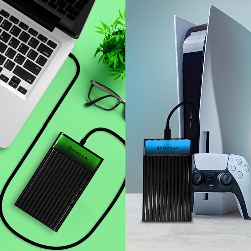 | Features | Reichlich Speicherkapazität: Mit 1 TB oder 2 TB Optionen sorgt unsere externe Festplatte dafür, dass Ihnen nie der Speicherplatz ausgeht. Perfekt für die Aufbewahrung all Ihrer Dokumente, Fotos, Videos und mehr. Erweitern Sie Ihren Speicher, ohne sich Sorgen machen zu müssen, dass er leer wird., Ultraschnelle Datenübertragung: Erleben Sie blitzschnelle Geschwindigkeiten mit USB 3.0-Technologie. Egal, ob Sie große Dateien übertragen oder Ihre Daten sichern, unsere Festplatte optimiert Ihre Zeit mit Hochgeschwindigkeitsübertragungen., Breite Kompatibilität: Entwickelt, um nahtlos mit einer Vielzahl von Geräten wie PC, Mac, Laptops sowie Spielekonsolen wie PS4, PS5 und Xbox-Serie zu integrieren. Diese Vielseitigkeit macht es zu einem unverzichtbaren Accessoire für jedes Tech-Setup., 【Langlebig und zuverlässig】Vertrauen Sie auf die robuste Konstruktion unserer externen Festplatte STARLA Langlebig, bietet zuverlässige Leistung und schützt Ihre wertvollen Daten bei längerem Gebrauch., Tragbar und kompakt: ideal für unterwegs. Egal, ob Sie auf Reisen, aus der Ferne arbeiten oder einfach nur eine zuverlässige Datentransportlösung benötigen, die kompakte Größe unserer externen Festplatte passt perfekt zu Ihrem Lebensstil. |
