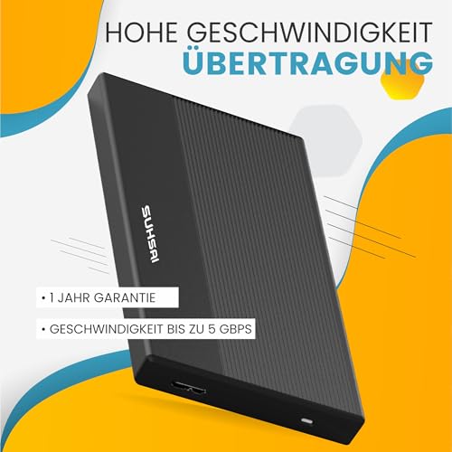Letztlich stellt die SUHSAI externe Festplatte eine attraktive Option für Nutzer dar, die Wert auf Qualität und Benutzerfreundlichkeit legen. Der robuste Aufbau und die zusätzliche Garantie geben zusätzliche Sicherheit und unterstreichen das Vertrauen des Herstellers in dieses Produkt. Für den alltäglichen Gebrauch und als Begleiter auf Reisen ist sie bestens geeignet, wenn große Speicherkapazitäten nicht notwendig sind.