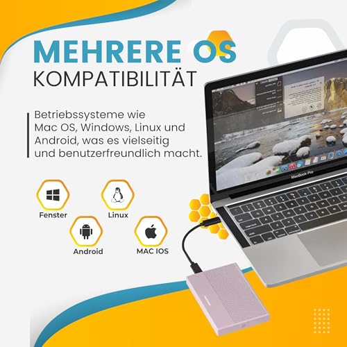 Das universelle Design der Festplatte stellt sicher, dass sie mit einer Vielzahl von Geräten kompatibel ist. Egal, ob du sie mit einem PC, Laptop, Mac oder sogar einem Smart TV verwenden möchtest, die Verbindung ist problemlos.