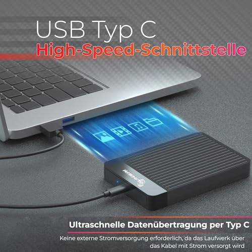 Entdecke die tragbare SUHSAI 1TB Festplatte für schnellen Datentransfer dank USB 3.1. Kompatibel mit vielen Geräten, bietet sie reichlich Speicherplatz in einem kompakten Design – ideal für unterwegs und sofort einsatzbereit ohne Installation.