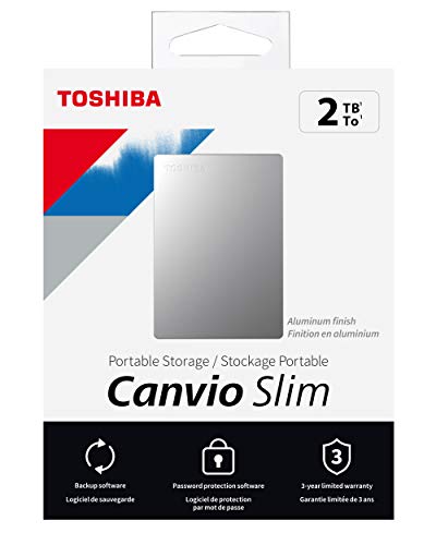 Toshiba 2TB Canvio Slim – Tragbare Externe Festplatte, HDD Kompatibel mit Windows und Mac, USB 3.2. Gen 1-Technologie, Aluminiumgehäuse, Silber (HDTD310XS3DA)