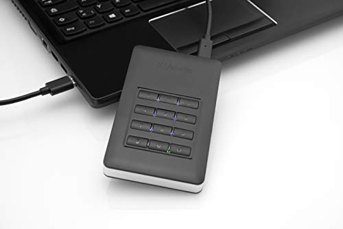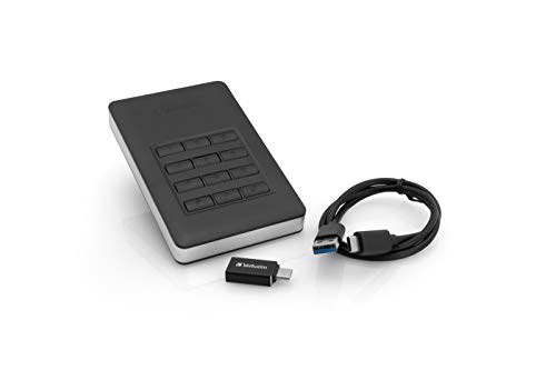 HOHE GESCHWINDIGKEIT: Die externe Festplatte von Verbatim überzeugt dank der USB 3.1 Schnittstelle der 1. Generation mit einer Datenübertragungsgeschwindigkeit von bis zu 5 Gbit/s., EXTREM SICHER dank dem integrierten Code-Zugang – nur autorisierte Personen können auf das Laufwerk und somit auf Ihre wertvollen Dateien und Informationen zugreifen., ANSCHLUSS & KOMPATIBILITÄT: Der USB-C Anschluss macht die Festplatte auch mit den neuesten Geräten kompatibel – im Lieferumfang sind zusätzlich ein USB-C- auf USB-A-Kabel & USB-A- auf USB-C-Adapter enthalten., HOHE KAPAZITÄT: Mit der Secure Portable Festplatte haben Sie ausreichend Platz, um Ihre Dateien oder auch Spiele zu speichern – außerdem bewahren Sie so alle Dateien bequem an einem Ort auf., Verbatim: Mit unserer jahrelangen Erfahrung stehen wir für genaue & fehlerfreie Datenspeicherung – Unsere Stärken in den Bereichen F&E und Qualitätssicherung garantieren erstklassige Produkte!